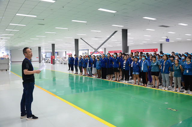 導(dǎo)讀:9月9日,公司家紡成品車間在生產(chǎn)現(xiàn)場召開全體員工大會,對八月份勞動競賽情況進(jìn)行了全面總結(jié),車間主任董魯波主持會議并做競賽點(diǎn)評。