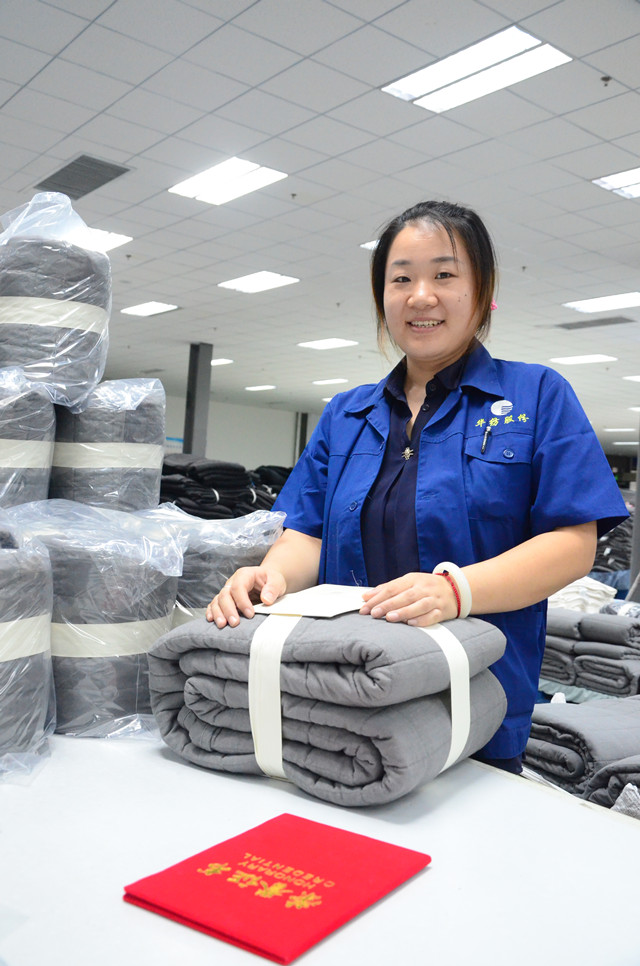 在個人表現(xiàn)方面,8月份綜合成績突出的6名優(yōu)秀員工在現(xiàn)場受到表彰獎勵。他(她)們是:縫制工段劉曉霞、宋洪梅,絎繡工段孫盼盼,裁床工段宋樂樂,后整工段劉蕾蕾、雷海燕。董魯波鼓勵家紡車間全體員工以受獎優(yōu)秀員工為趕超目標(biāo),立足本職崗位創(chuàng)先爭優(yōu);勉勵受到表彰獎勵的優(yōu)秀員工繼續(xù)保持干勁和榮譽(yù),在后續(xù)工作中做得更好。