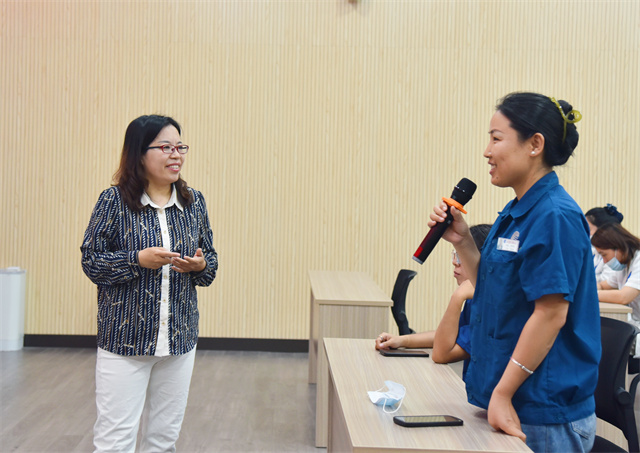講座過程中,王春梅解讀了在家庭教育中“表達情緒”代替“用情緒表達”的內涵和意義。在就如何引導孩子正確感悟、培養(yǎng)孩子養(yǎng)成良好習慣、給予孩子成長力量等方面,通過講理論、舉實例、現(xiàn)場討論等形式,深入淺出的為女職工進行了分析和授課。