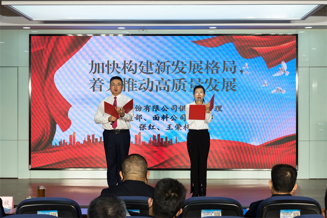公司供應鏈管理黨支部、面料公司黨支部代表張紅、王榮梓誦讀《加快構建新發(fā)展格局 著力推動高質量發(fā)展》。堅持實事求是,融入高質量發(fā)展大局;堅持守正創(chuàng)新,拓寬高質量發(fā)展路徑;堅持行穩(wěn)致遠,提升高質量發(fā)展能力。華紡股份將以高質量發(fā)展為目標,引領企業(yè)向更高水平闊步邁進。