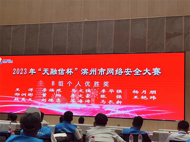 7月21日,2023年“天融信杯”濱州市網(wǎng)絡(luò)安全大賽決賽在渤海先進(jìn)技術(shù)研究院舉行,公司代表隊(duì)最終獲團(tuán)體三等獎(jiǎng),公司互聯(lián)信息部信息中心信息安全管理員崔乘耀獲個(gè)人二等獎(jiǎng),公司互聯(lián)信息部信息中心軟件開發(fā)技術(shù)員邢訓(xùn)彬、王艷瑋獲個(gè)人優(yōu)勝獎(jiǎng)。