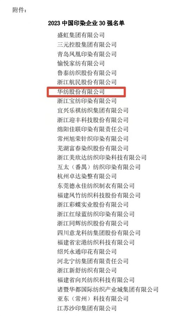 喜報!公司蟬聯(lián)2023年中國印染企業(yè)30強