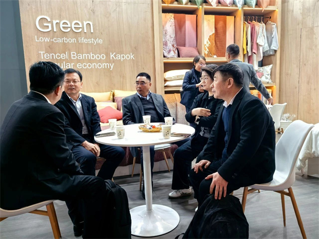 展會首日,中國紡織工業(yè)聯(lián)合會副會長楊兆華等領(lǐng)導(dǎo)專程到華紡股份展位參觀指導(dǎo)。領(lǐng)導(dǎo)們認(rèn)真聽取了家紡公司總經(jīng)理成汝海對家紡產(chǎn)品的介紹,仔細(xì)觀看了解了各類展品。楊兆華副會長對華紡股份有限公司在產(chǎn)業(yè)升級、產(chǎn)品結(jié)構(gòu)調(diào)整方面取得的成績給予了充分肯定,希望公司繼續(xù)加大研發(fā)投入,提升產(chǎn)品科技含量和附加值,進(jìn)一步加強品牌建設(shè),提高中國家紡產(chǎn)品在國際市場的知名度和影響力。