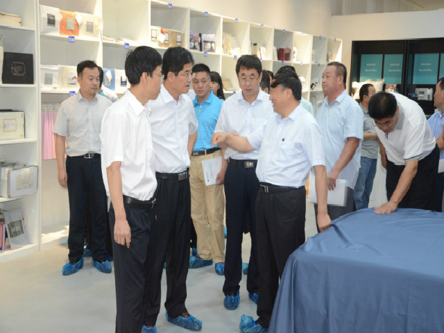 公司黨委書記、董事長王力民陪同考察團參觀考察,并向考察團重點介紹了公司在轉型升級、技術創(chuàng)新、品牌建設等方面所取得的成效以及管理創(chuàng)新經驗。考察團一行參觀了花布二車間、家紡成品車間等生產現場及家紡展廳、工程技術研究院。