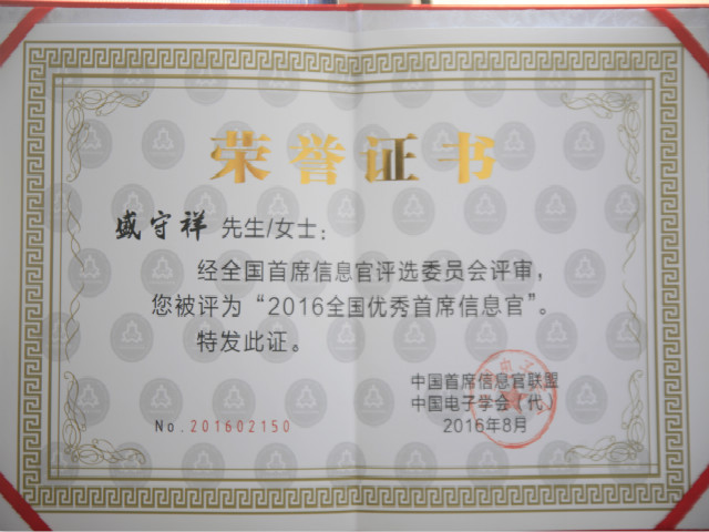 盛守祥榮獲全國(guó)優(yōu)秀首席信息官稱號(hào)