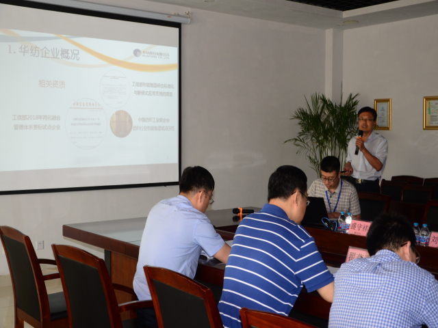 匯報結束后,王力民帶領審核組一行現場參觀了公司工程技術研究院、創(chuàng)意中心、花布二車間配料室、花布展廳、花布產品開發(fā)部、中控室、HFCPS中心等部門和生產現場,并就智能制造在相關方面的應用做了現場演示。