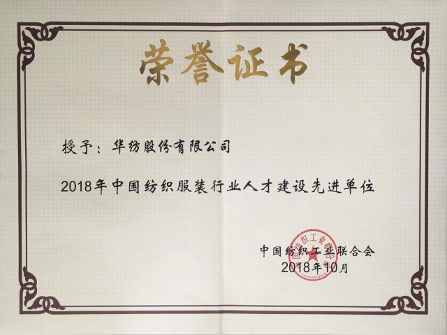 來自不同領(lǐng)域的專家學(xué)者圍繞紡織服裝人才建設(shè)進(jìn)行了發(fā)言,同時(shí),為進(jìn)一步推進(jìn)紡織行業(yè)“知識(shí)更新工程”人才建設(shè)培訓(xùn)工作,加強(qiáng)紡織服裝人才隊(duì)伍建設(shè),促進(jìn)行業(yè)轉(zhuǎn)型升級(jí)發(fā)展,大會(huì)還對(duì)2018年中國紡織行業(yè)人才建設(shè)先進(jìn)單位個(gè)人進(jìn)行了表彰。公司憑借在人才建設(shè)上取得的成績,被授予“2018年中國紡織服裝行業(yè)人才建設(shè)先進(jìn)單位”稱號(hào),副總經(jīng)理盛守祥獲得“2018年中國紡織服裝行業(yè)人才建設(shè)先進(jìn)個(gè)人”稱號(hào)。